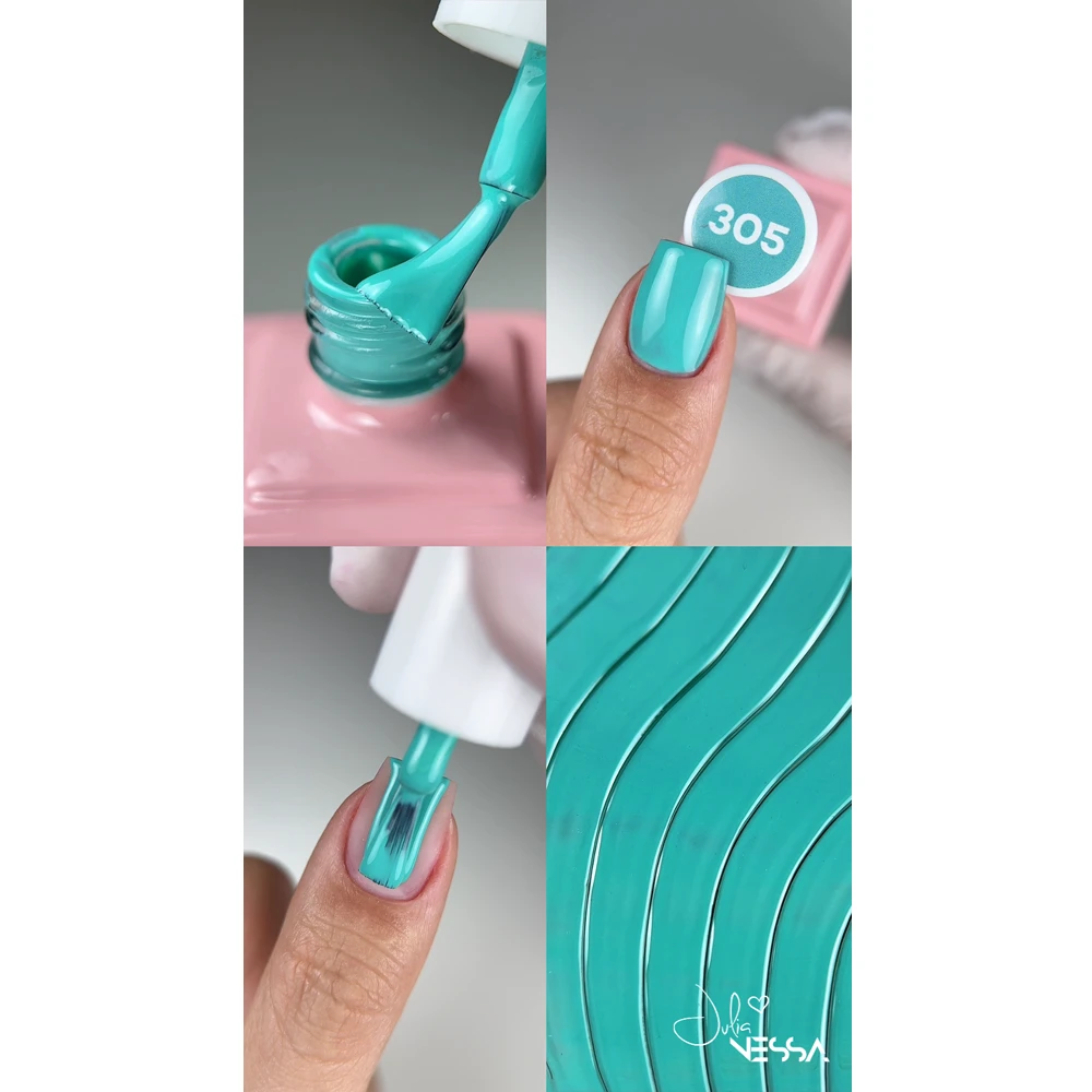 Miętowy lakier hybrydowy NessaUV 305 to świeży, energetyczny odcień turkusowej wody – jasny, radosny i pełen wakacyjnego luzu. Kolor balansuje między chłodną miętą a ciepłym turkusem, co nadaje mu wyjątkowej lekkości, że na paznokciach wygląda jak fragment kadru wyciętego z karaibskiej laguny. To absolutny hit na lato, który pięknie kontrastuje z opalenizną, jeansowymi tkaninami i białymi sukienkami. Można go też wykorzystać do malowania drobnych motywów kwiatowych lub tropikalnych liści na beżowej bądź mlecznej bazie – efekt jest świeży, wakacyjny i natychmiast poprawia humor.