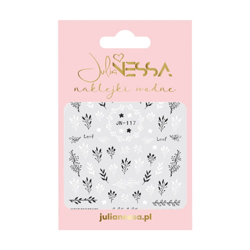 Naklejki wodne - liście B&W to szybkie salonowe zdobienia zawierające sporą ilość printów z motywem czarno-białych liści, które urozmaicą twoje stylizacje. Naklejki Julia Nessa dostępne są w 24 różnych tematykach. Fanki kwiatów, napisów czy komiksów z pewnością znajdą coś dla siebie.