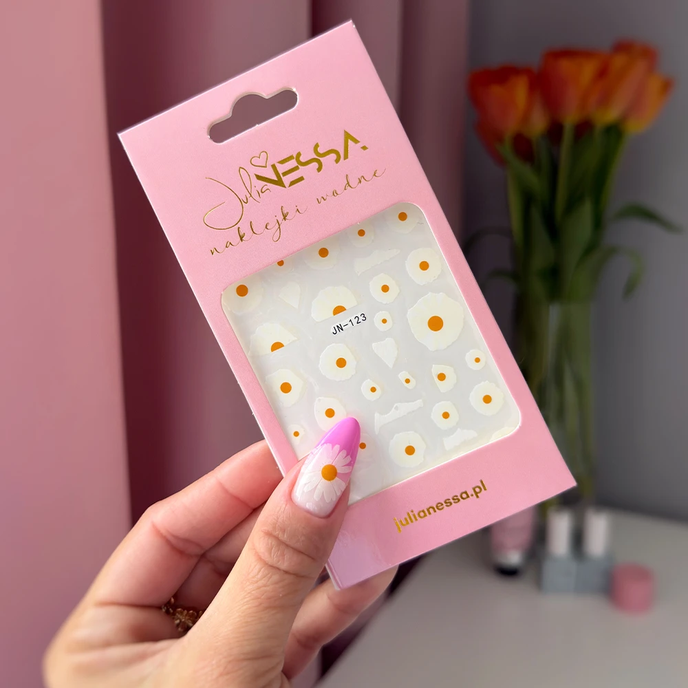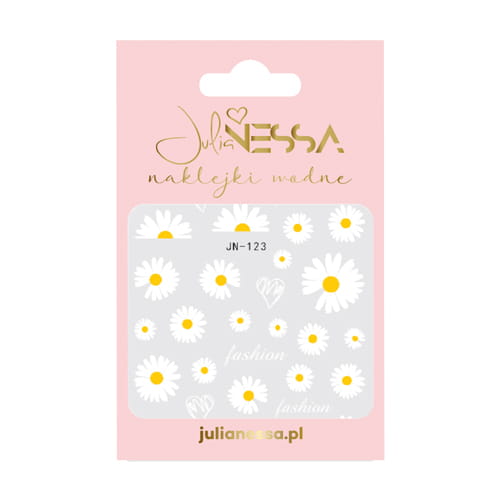 Naklejki wodne - stokrotki to szybkie salonowe zdobienia zawierające sporą ilość wzorów kwiatowych, które urozmaicą twoje stylizacje. Naklejki Julia Nessa dostępne są w 24 różnych tematykach. Fanki kwiatów, napisów czy komiksów z pewnością znajdą coś dla siebie.